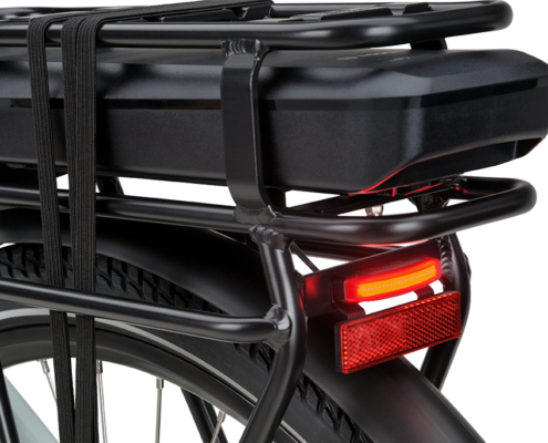 - Klik fietsaccessoires op de achterdrager met het MIK-systeem