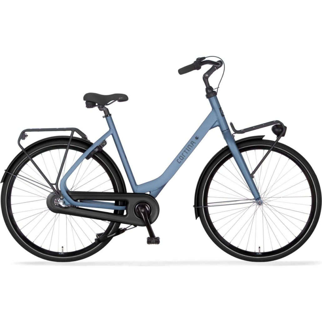 De Cortina Common is een allesbehalve gewone fiets! Deze trendy fiets heeft een uniek frame in opvallende kleuren, speciaal voor Cortina ontworpen banden en een wel heel bijzondere voor- en achterdrager! De dragers hebben namelijk het geïntegreerde AtranVelo System (AVS), waarmee je heel eenvoudig een mand op je fiets kunt klikken en er ook weer af kunt halen. Ga je een klein boodschapje doen, klik de mand los en vul hem in de winkel. Na het afrekenen klik je de mand – voor- of achterop – weer op de fiets. Of stal je je fiets regelmatig onbeheerd, ook dan kun je je mand er tijdelijk even afhalen. De Cortina Common is in verschillende uitvoeringen verkrijgbaar waar details zoals de voor- en achterdrager, kettingkast en spatborden in zwart mooi tegen afsteken. De voordrager en voorvork van deze fiets hebben net een andere kleur dan de rest van het frame. Zo weet je zeker dat je op een uniek exemplaar rondfietst. En als je van gadgets houdt is er de luxere variant met Gates beltdrive en verstelbare USB-stuurpen met USB-ingang en powerbank om tijdens het fietsen je telefoon op te kunnen laden.