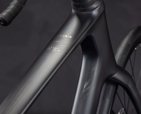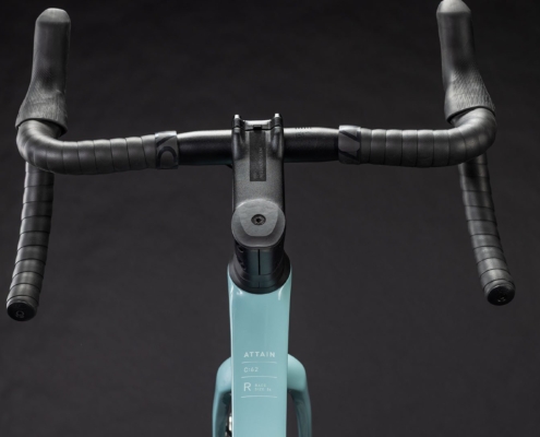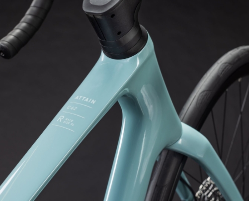 Behalve efficiënt is de carbon Attain C:62 eveneens ongekend comfortabel. Hoe dat kan? Onze technici hebben de laagdikte en vezelrichting van het carbon-materiaal geoptimaliseerd. Hierdoor is het semi-aero frame stijf en efficiënt waar nodig, maar worden trillingen bij de berijder weggehouden. En dan zijn er nog de banden; er past tot 34 millimeter breed rubber in het frame! De kabels zijn uiteraard geïntegreerd, voor langdurig soepel schakelen en minimale luchtweerstand. En het ziet er natuurlijk retestrak uit.