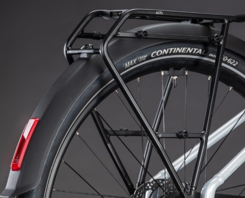 Dankzij ons Fully Integrated Battery-syteem verdwijnt de accu van de Bosch-motor bijna onzichtbaar in de onderbuis. De kunststof afdekklep is stof- en spatwaterbestendig en bovendien voorzien van een slot. Functioneel, fraai en veilig.