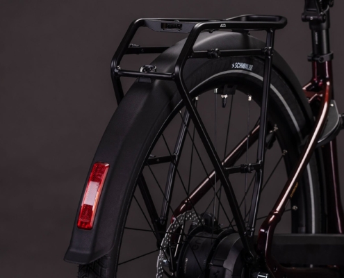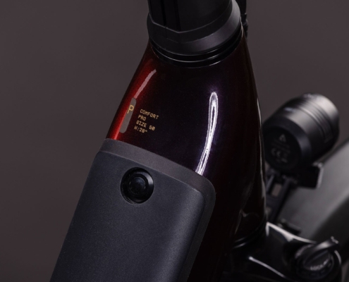 Dankzij ons Fully Integrated Battery-syteem verdwijnt de accu van de Bosch-motor bijna onzichtbaar in de onderbuis. De kunststof afdekklep is stof- en spatwaterbestendig en bovendien voorzien van een slot. Functioneel, fraai en veilig.