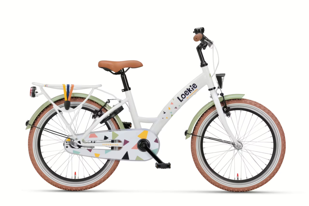 Zelf naar school of naar sport fietsen wordt een feestje op de gloednieuwe Loekie Superstar in Terrazzo wit. Er is aan alles gedacht om de fietsrit voor jouw kind zo veilig mogelijk te maken. Deze 20 inch kinderfiets is voorzien van een terugtraprem, een extra handrem op het voorwiel en een voor- en achterlamp. Geschikt voor kinderen tussen de 6 en 8 jaar.