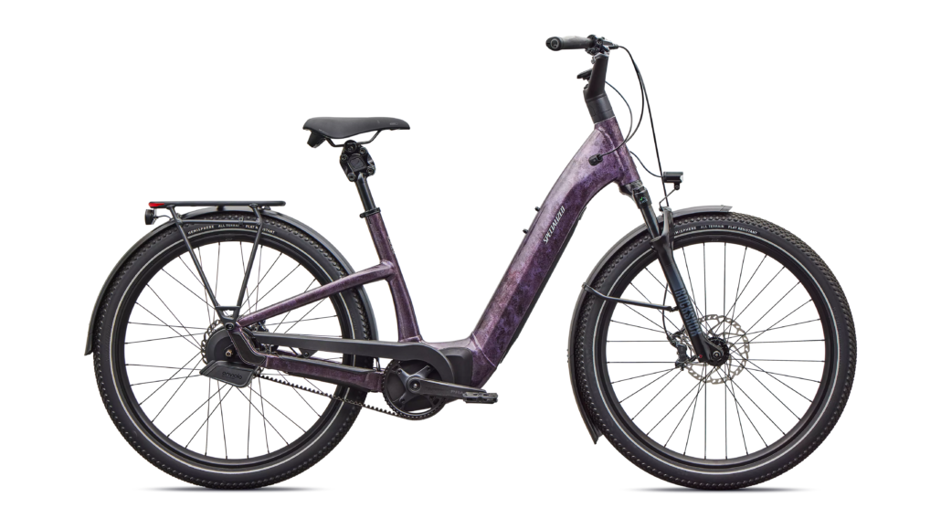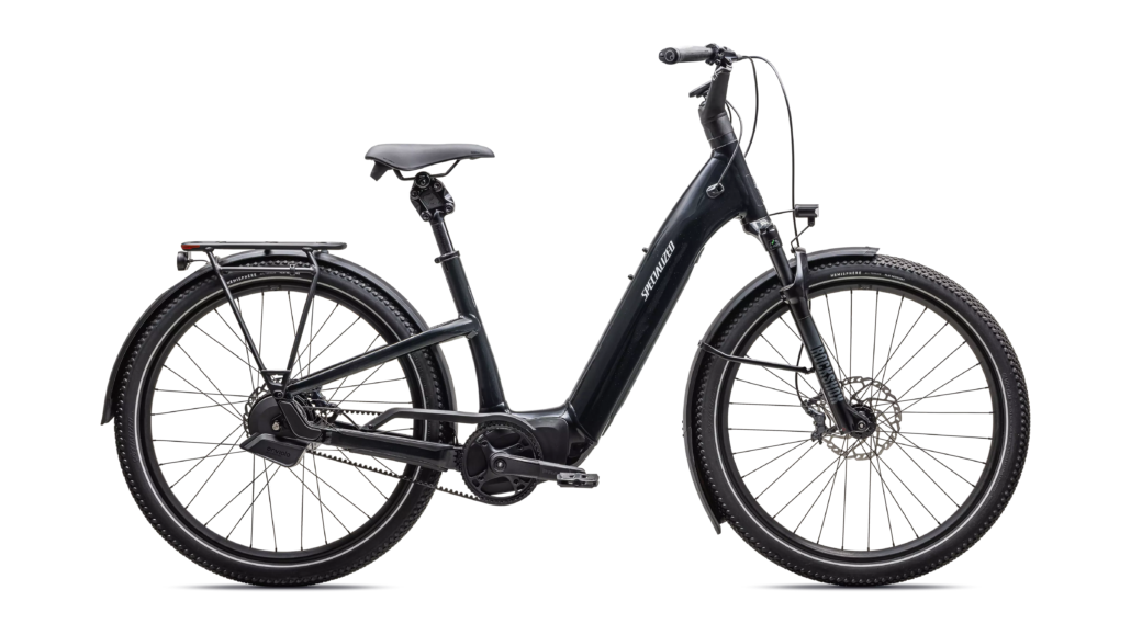 De Specialized Como 5.0 IGH is een relaxte e-bike met een strakke look en een rechte rijderspositie voor comfortabel comfort en stijl. Deze elektrische fiets met vol vermogen is ontworpen voor in de stad en is uitgerust met spatborden, verlichting en een laag step-through frame, waardoor hij perfect is voor dagelijks woon-werkverkeer of rijden door de stad.