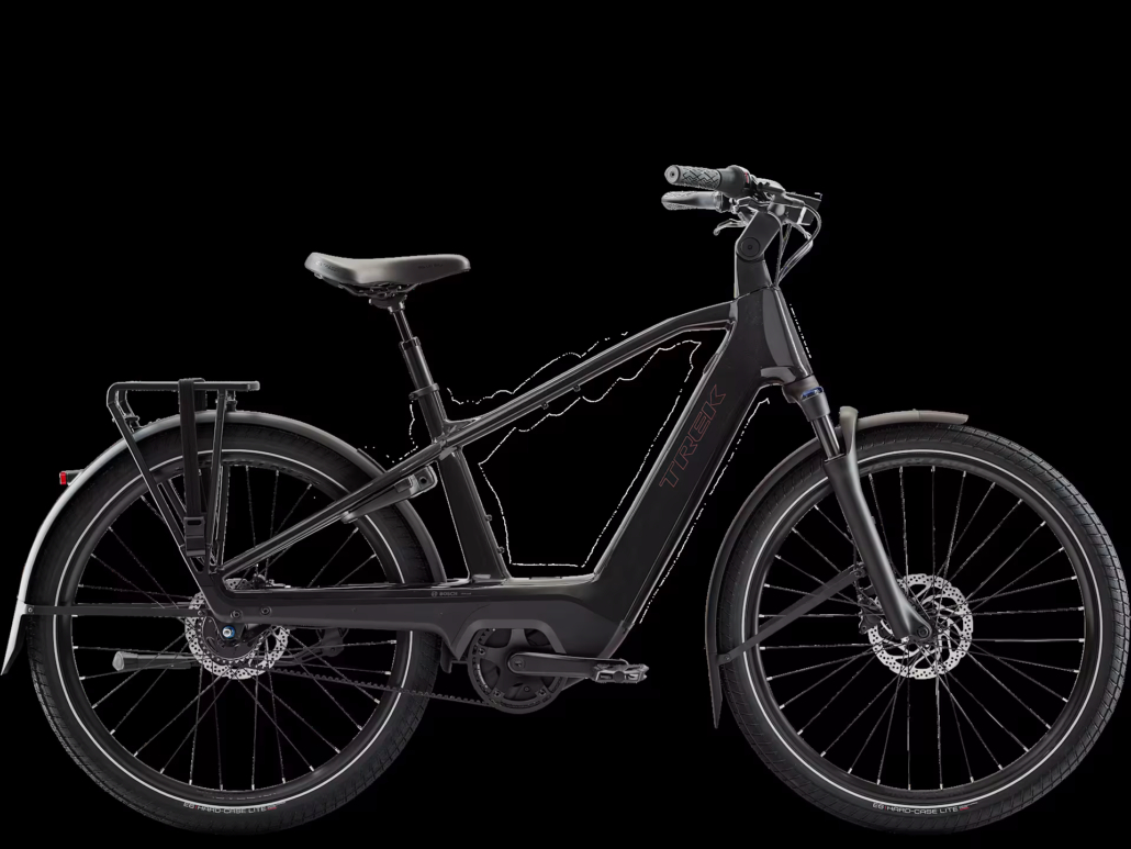 Hij is compleet uitgerust met een e-bikespecifieke Shimano Nexus 5 interne versnellingsnaaf, gekoppeld aan een duurzame en geruisloze Gates CDC-riemaandrijving en een Bosch Performance Line-motor met 540 Wh of 800 Wh accu. Hij wordt gecompleteerd met een 63 mm SR Suntour voorvork met spiraalveer om hobbels en ruige wegen op te vangen.